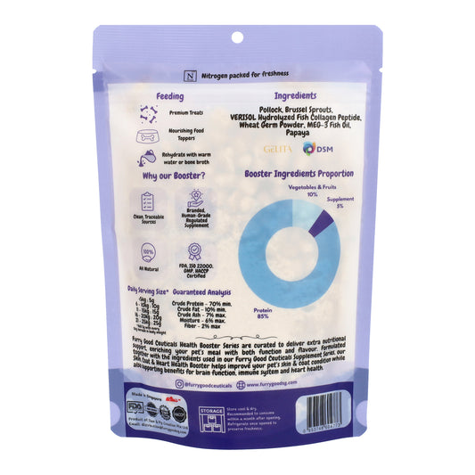 Skin, Coat & Heart Health Booster | Immune Plus - Pollock infused Brussels Sprouts, Papaya, Fish Oil + Fish Collagen